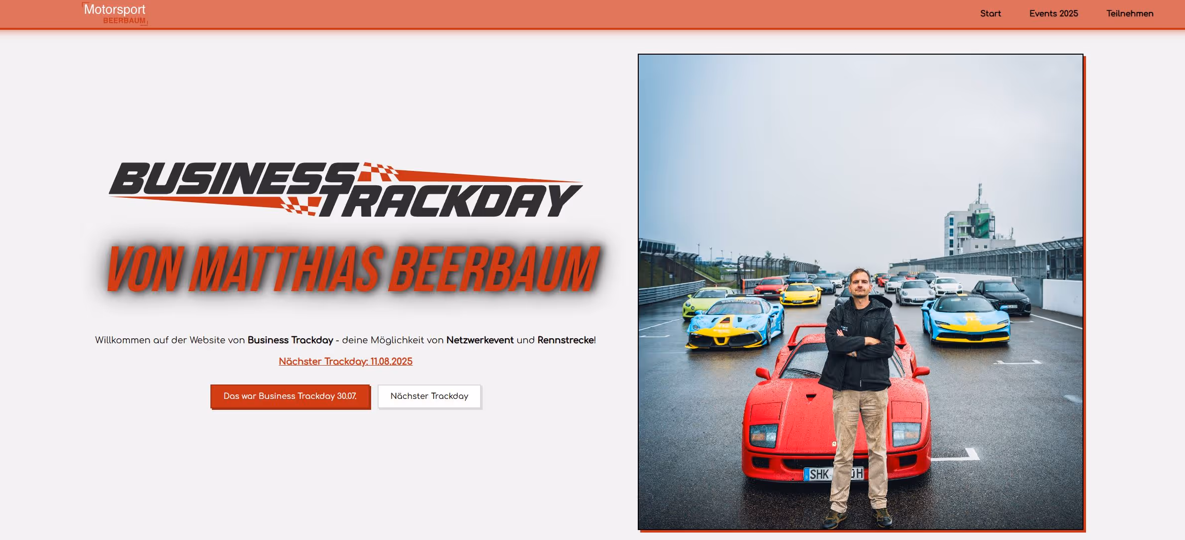Das Ergebnis: Eine performante, nutzerfreundliche Event-Website, die das Trackday-Gefühl digital spürbar macht – und dem Kunden einen effizienten, skalierbaren Prozess in die Hand gibt.